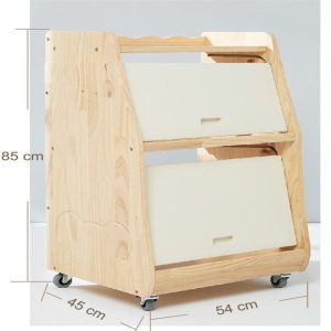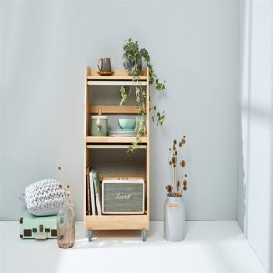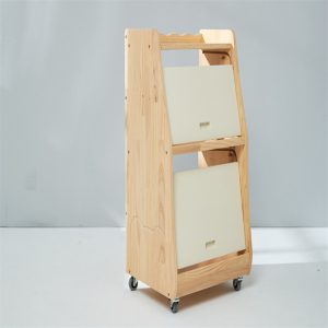 The wheels allow the organiser to be moved easily throughout the house and the slide up doors have a latch that can help prevent little fingers from accessing the organiser.